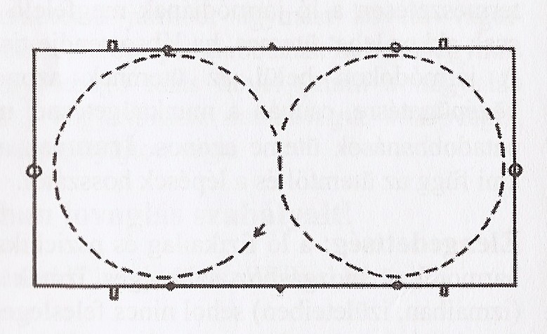 A lovardai patanyomon balkézre lovagolunk, ha bal kezünk van a lovarda belseje felé, és jobb kézre, ha a jobb kezünk van belül.