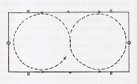 A lovarda szélén különböző betűkkel jelölik meg a saroktól 6 m-re lévő átváltó pontokat, valamint a hosszabb és rövidebb falakon elhelyezett felezőpontokat. ezeket a pontokat jól látható F-M-K-H, illetve A-B-C-K-H betűkkel jelölik. Ezen kívül vannak betűvel külön nem jelölt úgynevezett kör érintő pontok a hosszú falon, amit a lovasoknak a rövid fal közepén elkezdett szabályos kör lovaglásakor kell érinteniük. Lásd az ábrákat.